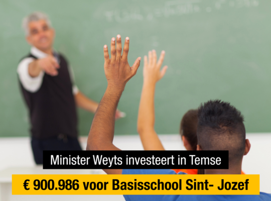 Vlaams minister van Onderwijs Ben Weyts (N-VA) investeert € 900.986 in Vrije Basisschool Sint- Jozef in Temse. “We timmeren verder aan een betere onderwijskwaliteit voor onze leerlingen”, zegt Weyts. “Die onderwijskwaliteit krikken we mee op door te investeren in onze schoolinfrastructuur.”